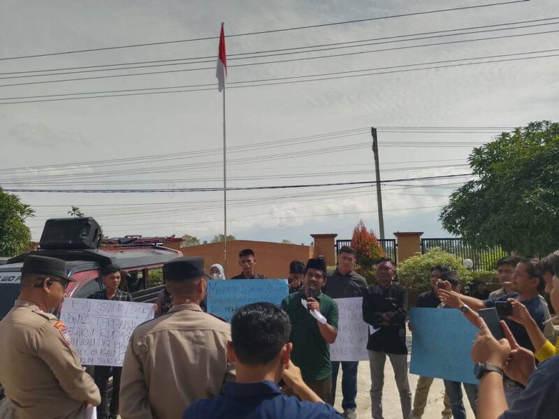 KUTACANE  |  Aksi unjuk rasa digelar oleh sekelompok pemuda yang menamakan diri mereka sebagai Aliansi Barisan Sepuluh Pemuda di depan kantor Mahkamah Syar’iyah Kutacane, Kabupaten Aceh Tenggara, Rabu (2/7/2025). Aksi ini dilakukan sebagai bentuk protes terhadap penundaan vonis terhadap terdakwa kasus rudapaksa anak di bawah umur yang dianggap mencederai rasa keadilan dan menimbulkan spekulasi negatif di tengah masyarakat.