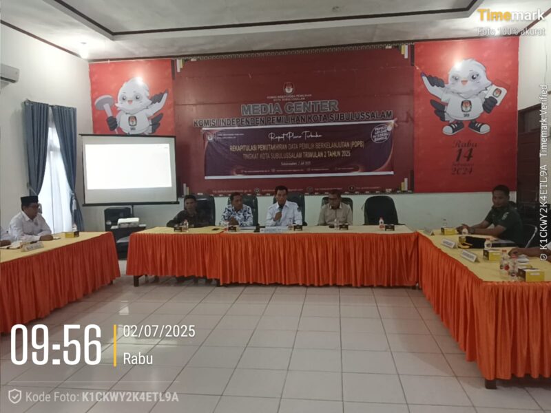 Subulussalam | Komisi Independen Pemilihan (KIP) Kota Subulussalam kembali menunjukkan taringnya dalam menjaga integritas demokrasi. Rabu pagi ini, ruang rapat KIP dipenuhi oleh aktor-aktor strategis dari lintas lembaga dalam Rapat Pleno Terbuka Pemutakhiran Data Pemilih Berkelanjutan (PDPB) Triwulan II Tahun 2025.(02/07/25).