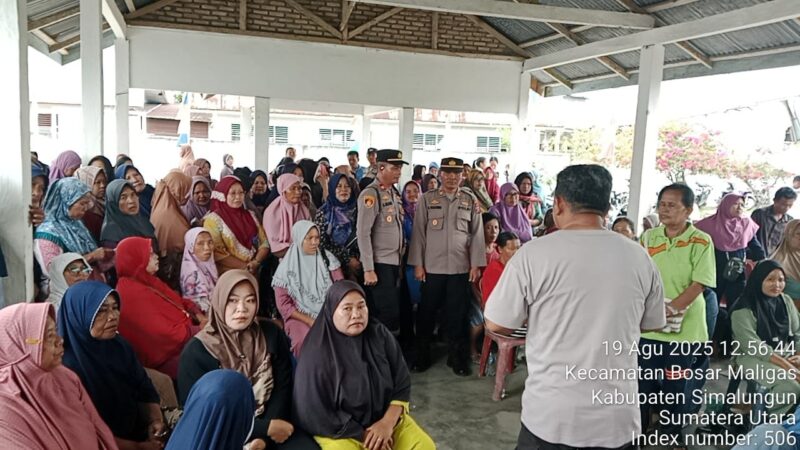 SIMALUNGUN – Polsek Bosar Maligas Polres Simalungun kembali menunjukkan komitmennya dalam menjaga keamanan dan ketertiban masyarakat melalui program “Polri Untuk Masyarakat” dengan menggelar pasar murah di Pekan Mingguan Kelurahan Bosar Maligas, Selasa (19/8/2025).