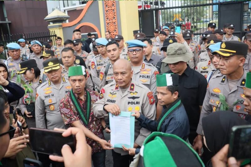 Pekanbaru– Wakapolda Riau memimpin langsung pengamanan aksi damai yang digelar oleh Badko Himpunan Mahasiswa Islam (HMI) Riau di Mapolda Riau. Kegiatan ini bertujuan untuk menyalurkan aspirasi mahasiswa terkait ketimpangan sosial dan maraknya kasus korupsi di negeri ini, Selasa (2/9/2025).