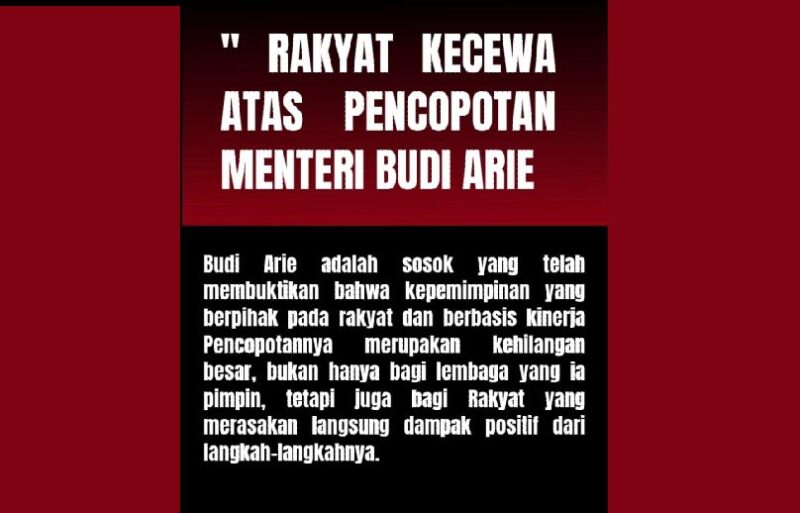 Budi Arie adalah sosok yang telah membuktikan bahwa kepemimpinan yang berpihak pada rakyat dan berbasis kinerja adalah mungkin. Pencopotannya merupakan kehilangan besar, bukan hanya bagi institusi yang ia pimpin, tetapi juga bagi publik yang merasakan langsung dampak positif dari langkah-langkahnya.
