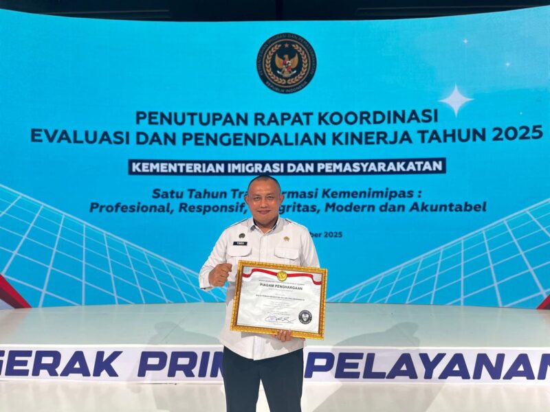Jakarta – Bapas Palangka Raya mendapatkan apresiasi penghargaan Wilayah Bebas Korupsi (WBK) dari Kementerian Pemberdayaan Aparatur Negara dan Reformasi Birokrasi. Apresiasi dan Penghargaan Zona Integritas WBK/WBBM dari Menpan RB diserahkan pada Selasa, (16/12/2025). Kegiatan ini juga diikuti secara daring oleh seluruh pegawai Bapas Palangka Raya.