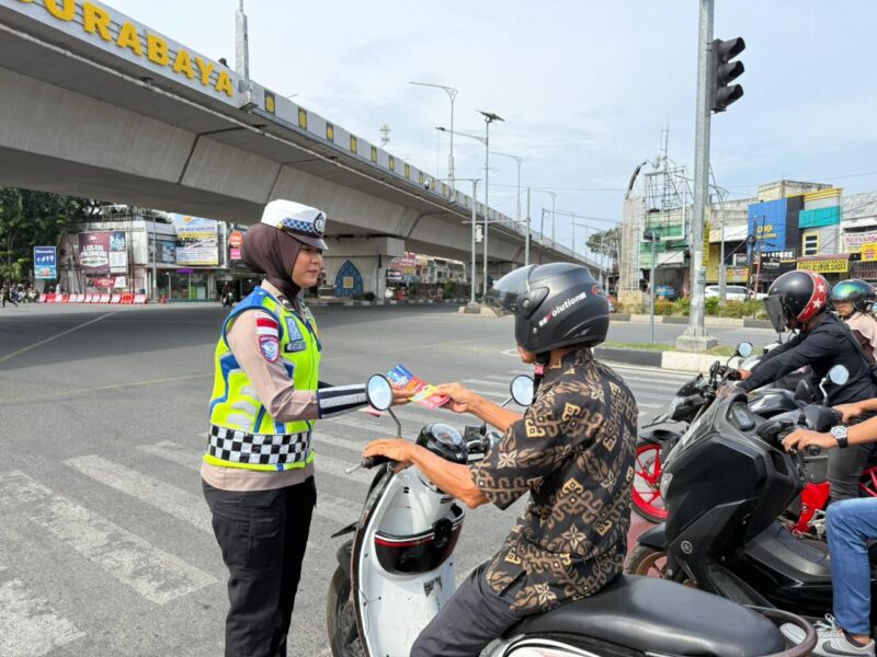 Banda Aceh — Satuan Tugas (Satgas) Preemtif Operasi Keselamatan Seulawah 2026 terus menggencarkan upaya edukasi kepada masyarakat guna meningkatkan kesadaran tertib berlalu lintas. Salah satu langkah yang dilakukan yakni melalui pembagian brosur atau stiker kepada masyarakat dan para pengguna jalan.