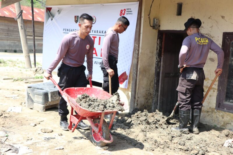 Aceh Tenggara – Wujud kepedulian terhadap masyarakat terdampak bencana banjir, personel Polres Aceh Tenggara bersama Mahasiswa Sekolah Tinggi Ilmu Kepolisian (STIK) Angkatan 83/WPS melaksanakan kegiatan kurve membersihkan rumah warga dari sisa lumpur banjir, Senin (16 Februari 2026).