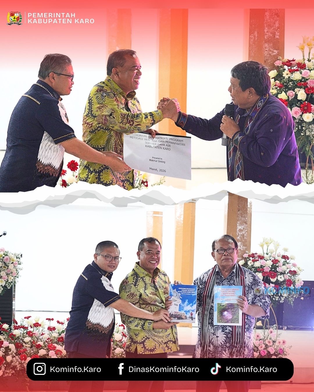Dalam kesempatan tersebut, Bupati Karo juga menerima sejumlah karya pemikiran dari para tokoh Karo. Di antaranya dokumen “Kebijakan dan Matriks Program Mitigasi Bencana dan Pemanfaatan Sumber Daya Air Kabupaten Karo” dari Makmur Ginting. Selain itu, ia juga menerima buku “Heroisme Kejuangan (Wisata Sejarah) di Palagan Karo Area” serta buku “Mewujudkan Wisata Gunung Api Karo Volcano Park di Kabupaten Karo” dari Jonatan Tarigan.